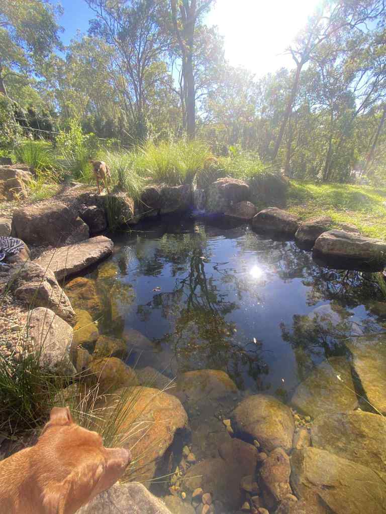 Around this time last year, we decided to put in a swim pond. Think fish pond, but for humans (though there are also fish, but little ones who won’t bite my butt or anything). We had a corner of our yard that was a constant mud pit, a delight for the dogs until they realised playing in it=a hose-down and extra hours outside ‘cold and alone’…they’re a bit dramatic. We’d begun considering putting a plunge pool in, as we’re on the Gold Coast and all the cool kids have one. However, what to me looked like a big concrete or steel cube apparently cost $30,000+, and that was the basic one without any sort of pump, heater, etc. Epp. I suggested to Rob we could probably just get a second-hand water tank and cut the top off or something, and starting to send some Marketplace listings of options. He was about to head overseas again for his yearly three months in Europe chasing summer while the dogs and I were left ‘cold and alone’ (see where they get it from…) in the Aus winter. Whether it was the terror of another one of my ‘Hey babe look what I did while you were away!’ home DIY projects, or pure luck, he found something called swim ponds. These magical backyard dreams were naturally filtering, chemical-free alternatives to pools, and even okay for dogs to swim in! Keep talking Rob…
